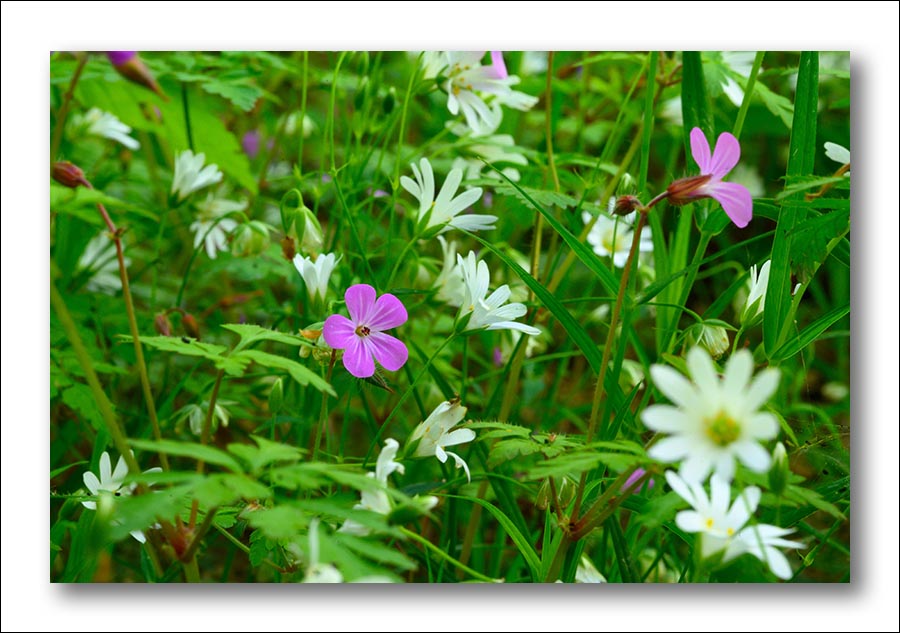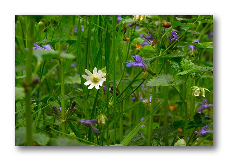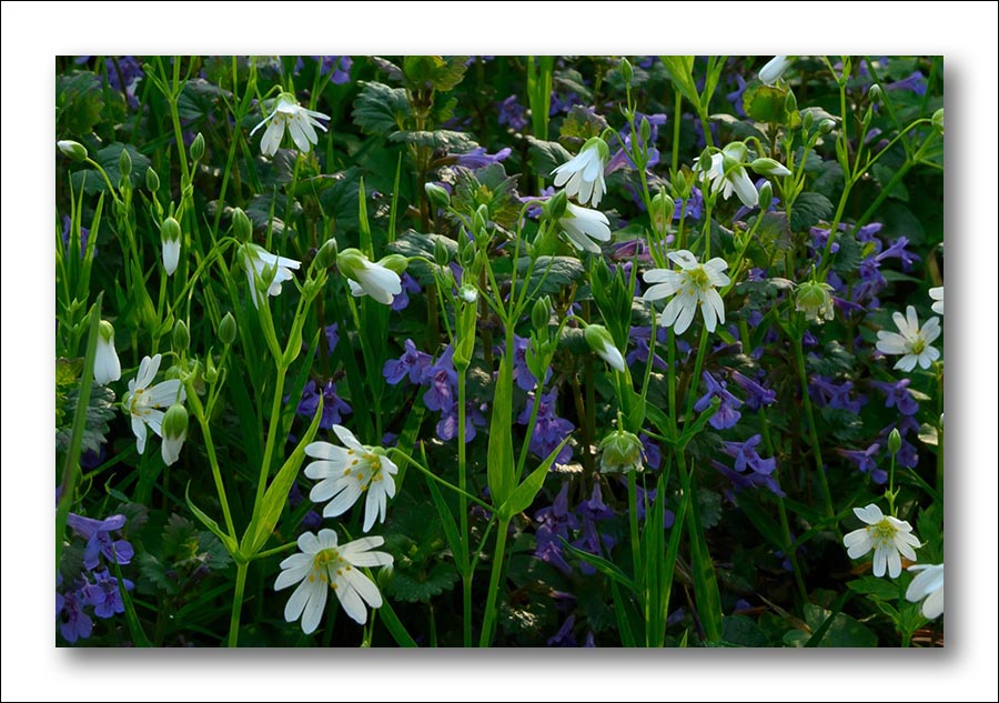 Zur gleichen Zeit entwickelt sich die Krautschicht kräftig und andere Blumen mischen sich zwischen die Sternmieren. |