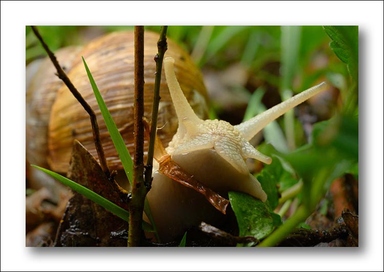 Der "Mini-Urwald" war das Revier der Weinbergschnecke. An diesem geduldigen Motiv konnte ich meine tierfotografischen Fähigkeiten ein wenig schulen. |
