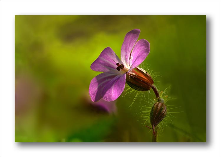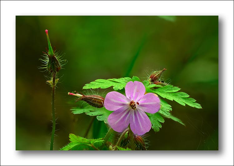 ![]() In der Krautschicht zog eine weitere kleine, leuchtend rote Blüte meine Aufmerksamkeit auf sich, das Ruprechtskraut, eine "Allerweltspflanze". |