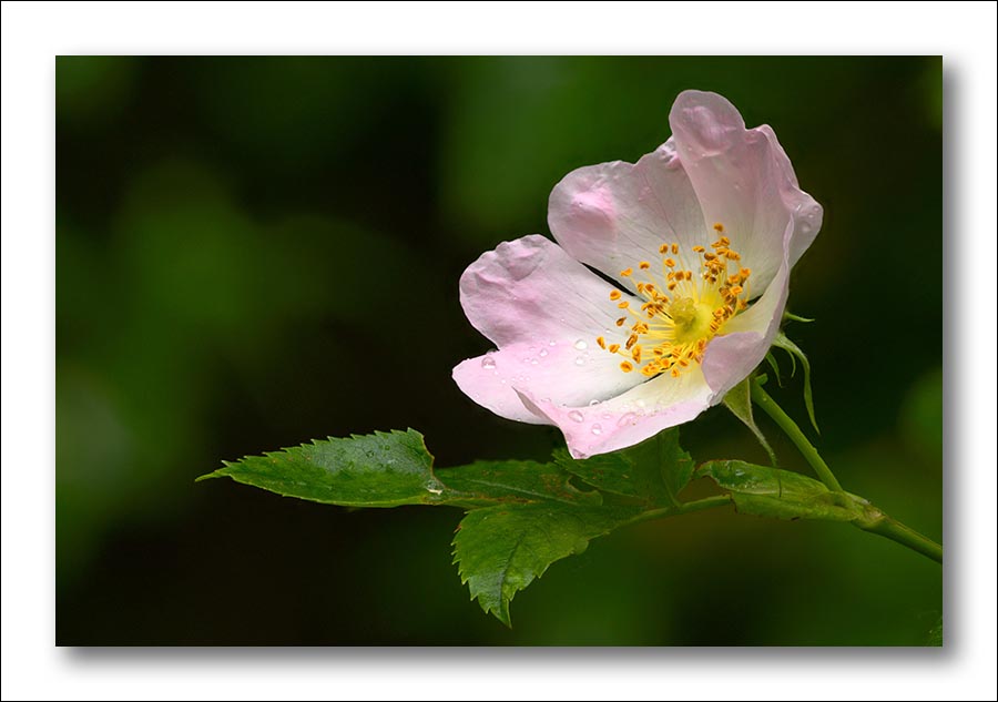 ![]() Die Heckenrose (= Hundsrose) ist am Waldrand unübersehbar. Sie blüht Anfang Juni in der Davert. |