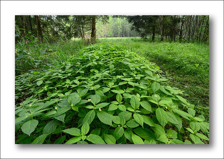 Die großen Bestände des Kleinblütigen Springkrauts erscheinen im Juni an vielen Wegrändern. |