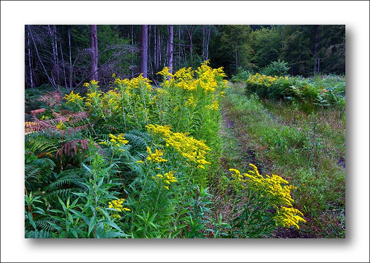 Die Kanadische Goldrute blüht im August unübersehbar an vielen Waldwegen. |