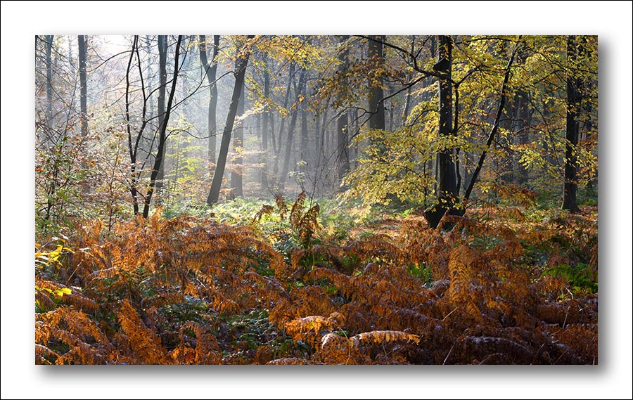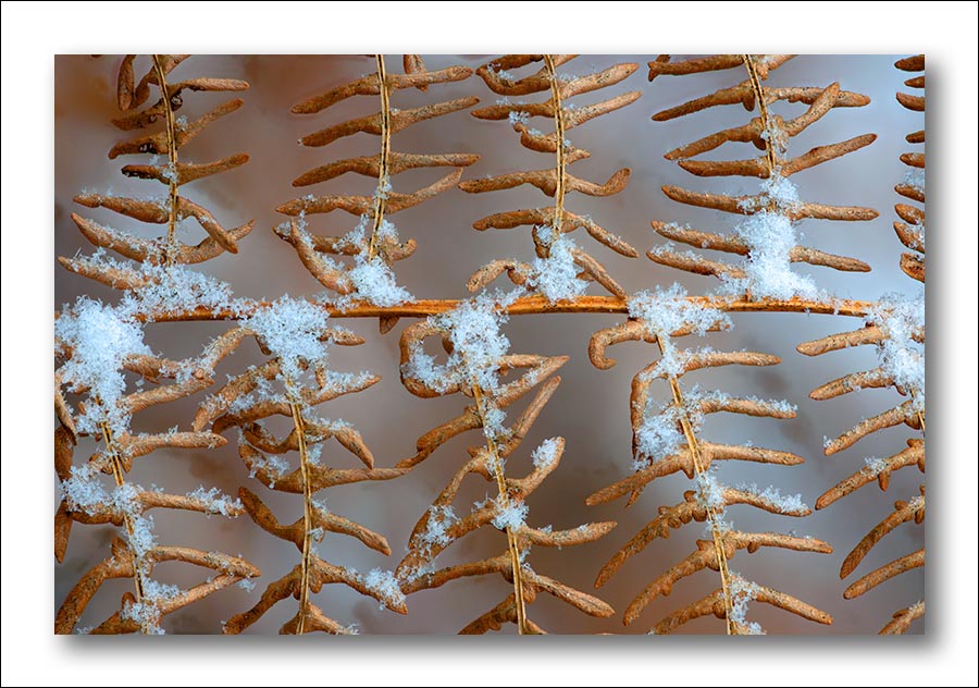 ![]() Die grüne Farbe ist schon seit Monaten aus den Farnwedeln gewichen, aber die abgestorbenen Farngerippe sind auffallende Strukturen im Winterwald. |