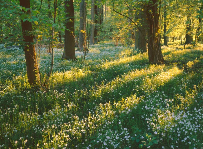 ![]() Waldboden mit Sternmiere bei Münster-Nienberge (1999-04-30A) 4x5" Velvia 50, 120 mm, Pol.-F., 12 Sek., Bl. 32 |