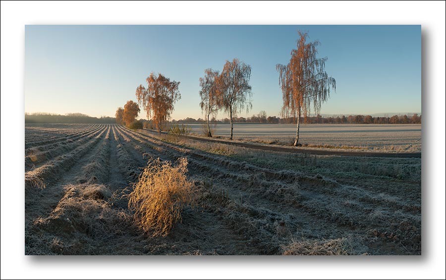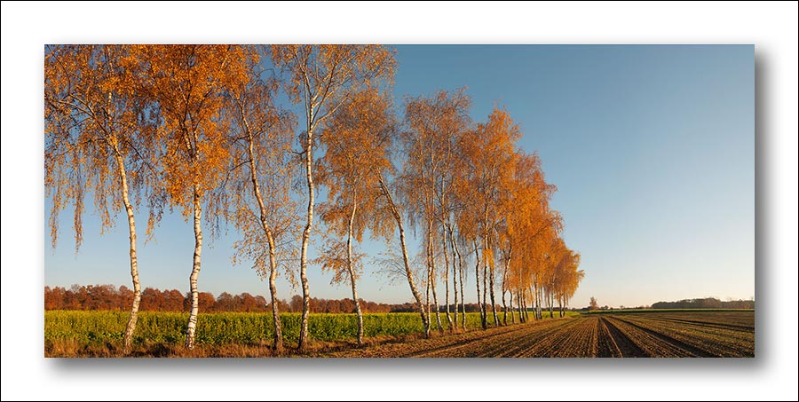 ![]() Birken am Feldrand, bei Telgte, November (2012-11-14-D3x-156ff) Einreihiges Panorama, zusammengesetzt aus 5 Bildern Nikon D3x, AF-Nikkor 18-35mm 1:3,5-4,5 bei 32 mm, 1/60 sec, f 11 |