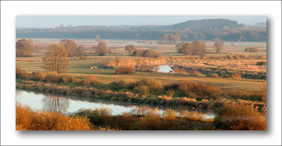 Die Region, die ich auf den Fotofahrten im Herbst und im Winter besuchte, ist nicht so bekannt wie die benachbarten Nationalparks. Die Narew kommt aus Weißrussland und fließt zunächst am Nordrand des Białowieża Nationalparks entlang. Dieser Nationalpark ist wegen seiner Wölfe und Wiesente bekannt. Der Oberlauf der Narew endet in dem kleinen "Narew Nationalpark". Einige Kilometer flußabwärts kommt dann der "Biebrza Nationalpark", ein berümter Rastplatz für Tausende von Wasservögeln. Das obere Narew Tal ist Teil des europaweiten "Natura 2000" Schutzprogrammes. Die Dörfer Trześcianka, Soce und Puchły sind die bekantesten aus einer Gruppe ähnlicher Dörfer am nördlichen Flußufer. Um touristisch besser wahrgenommen zu werden, haben sie sich den Namen "The Land of Open Shutters" gegeben. |