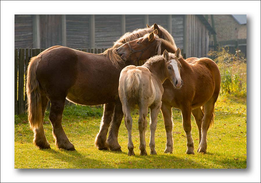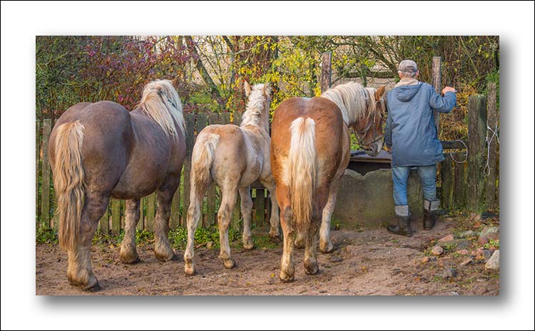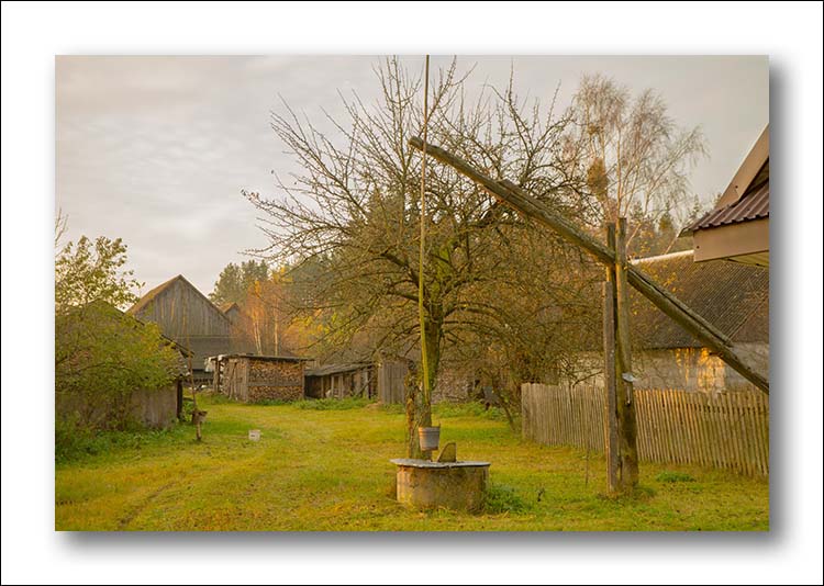 Pferdezucht findet hier auch unter traditionellen Bedingungen statt. Auf diesem Hof werden die Tiere an einem Brunnen getränkt. Die Tiere leben in einem malerischen alten Holzstall. ( ↓ ) |
