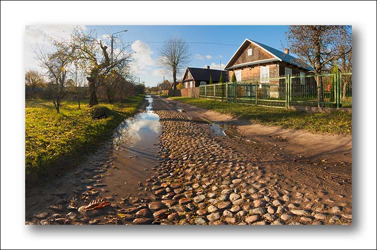 Ein anderes Stück der Dorfstraße mit alter Pflasterung. |
