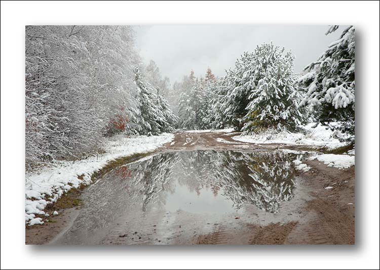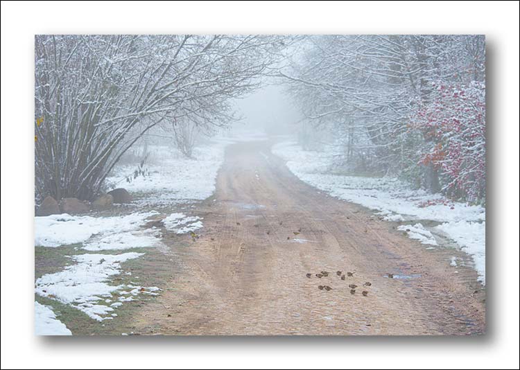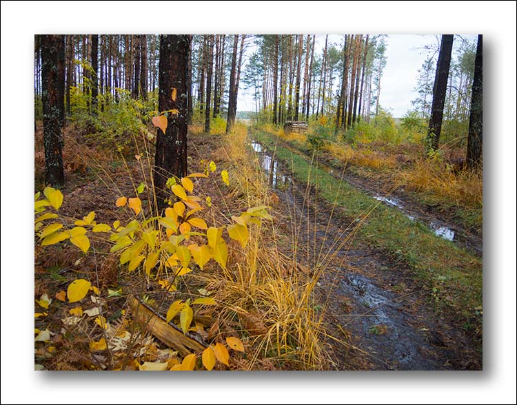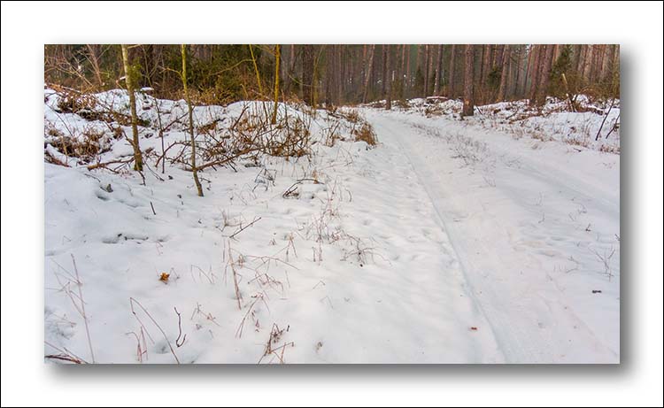 Dieser absolut unspektakuläre Waldweg überraschte mich an einem grauen Wintertag. Beim ersten Bild aus dem Oktober stehen die Grashalme noch aufrecht. |