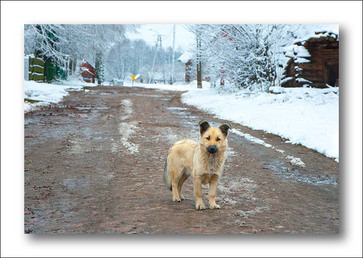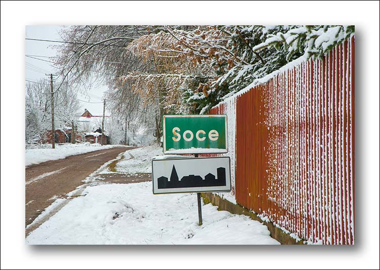 Die Dorfstraße von Soce im Winter erscheint mir wie ein Stück aus einem Märchen. |