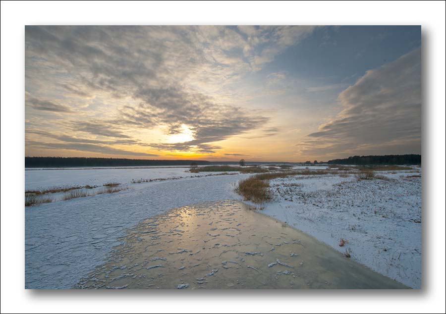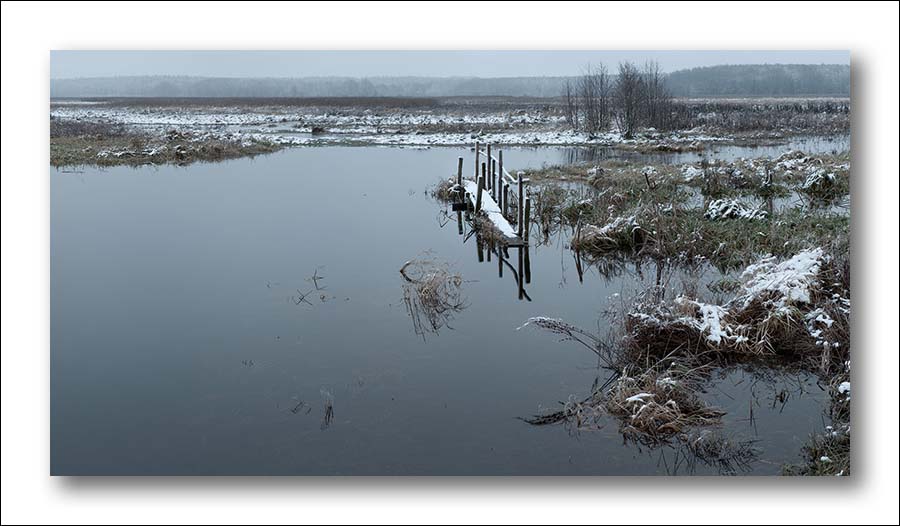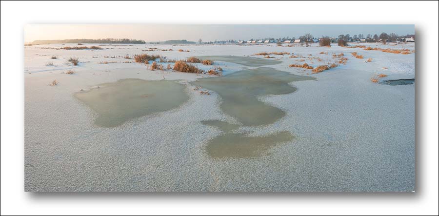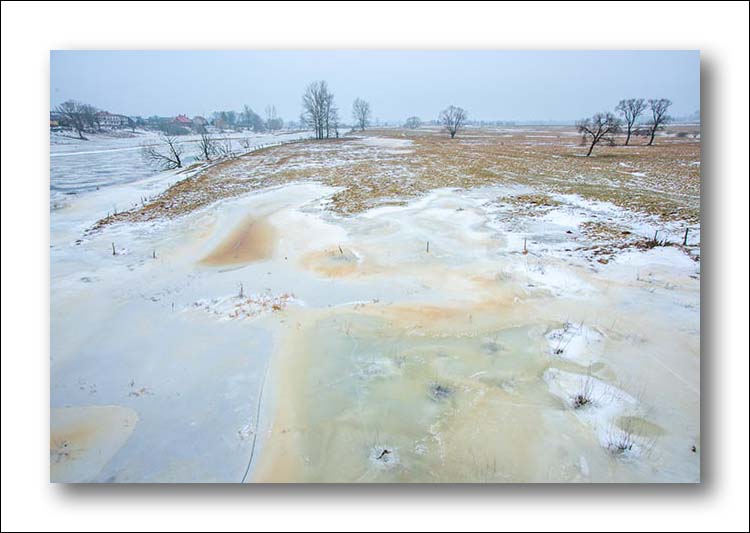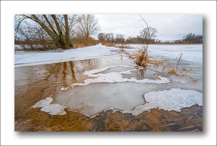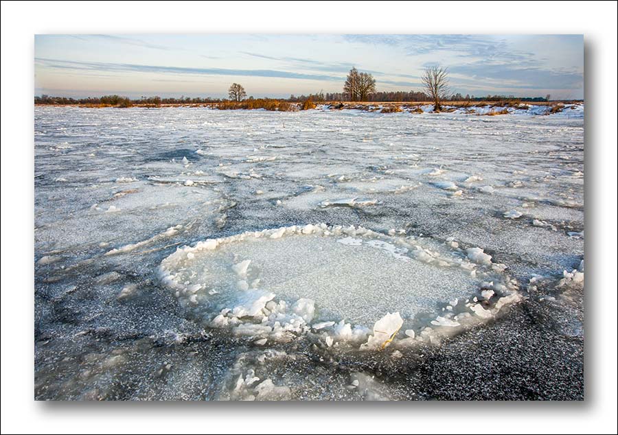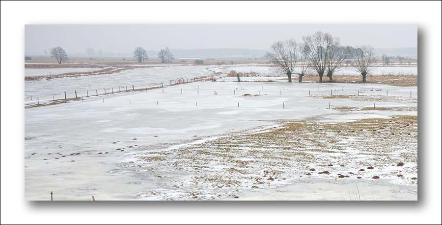 Als ich im Januar 2017 zur Narew zurückkam waren die Wiesen immer noch überflutet. Auf dem Wasser hatte sich eine Eisschicht gebildet. ![]() |