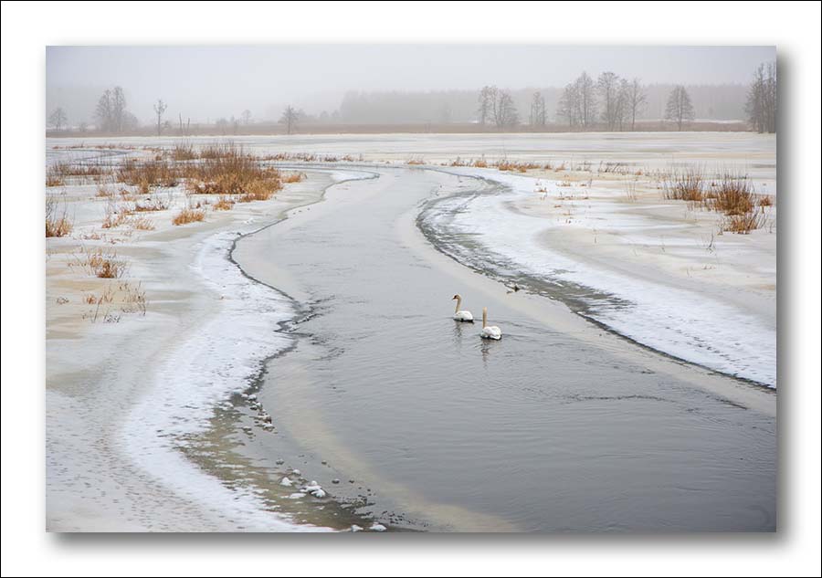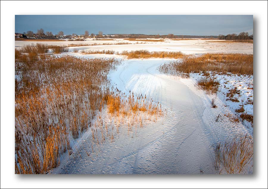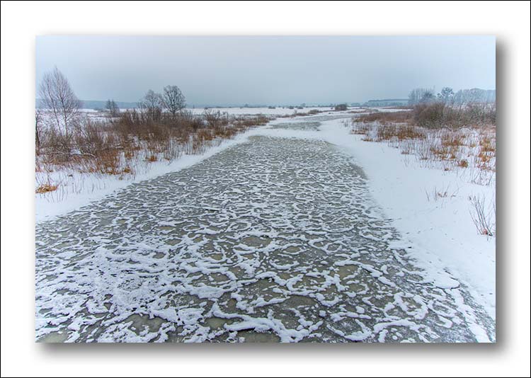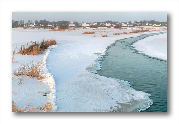 ![]() ... Eis und Schnee bedecken im Januar die Wiesen am Fluß. |