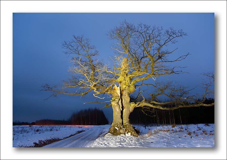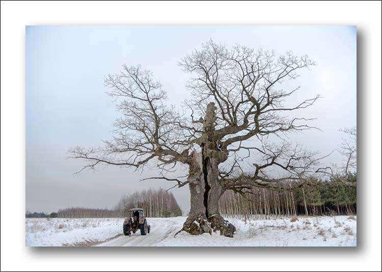 Viele schöne Natur-Monumente findet man in der Landschaft außerhalb des Tales. Diese alte Eiche steht beim kleinen Dorf Przybutki (bei Krzywiec). |